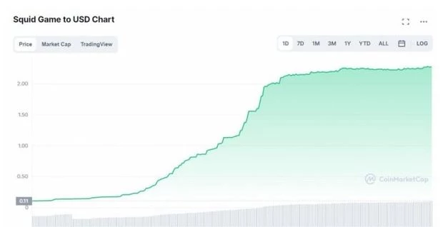지난 28일(현지 시각) 미국 경제매체에 따르면 '스퀴드 게임' 코인이 최근 등장했다. 이 코인은 28일(한국 시각) 오후부터 급등세를 타기 시작해 24시간 만에 2400%상승, 발행 24시간 만에 2400% 올랐다고 보도했다. 시가총액은 1억 7400달러를 넘어섰다..