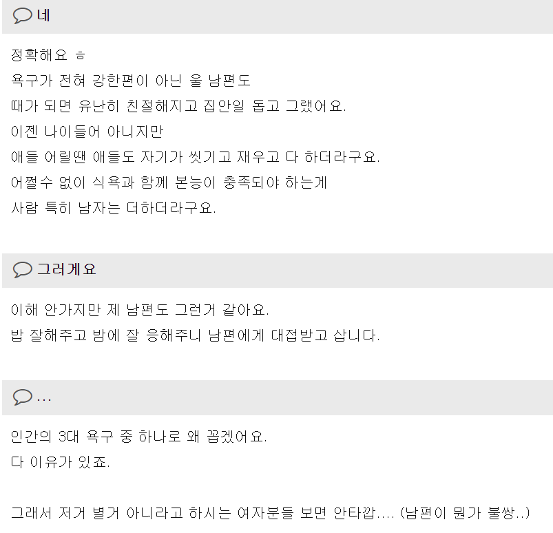 티비서 보면 밤일 하고 나면 부인들이 준비한 아침밥상이 달라진다고 그러잔아요 그런거처럼 저희남편도 제가 잘 응해주고 스킨쉽 해주고 하면